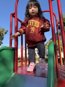 よく子供は風の子と言いますが、私は寒くてできれば部屋の中で過ごしたいのですが、子供たちは今日も滑り台したー三輪車乗ったーなどと言っていて本当に子供は風の子だな。。。。と笑ってしまいました。