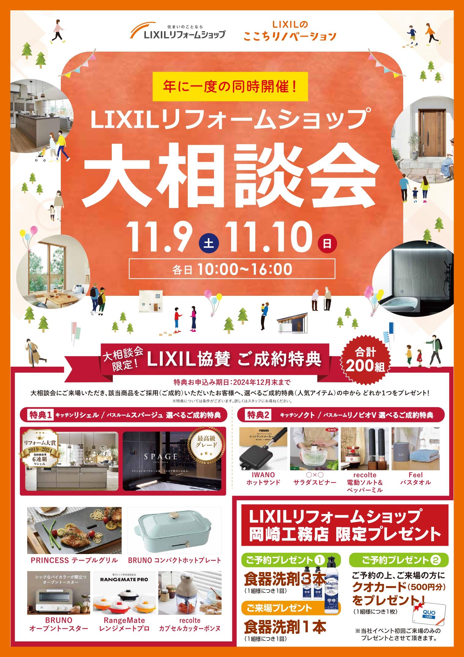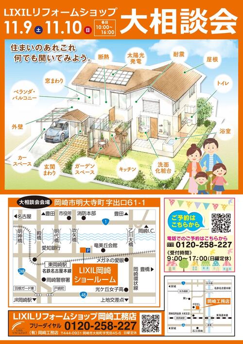 LIXIL岡崎ショールームにて11/9(土)・10(日)にLIXILリフォームショップ大相談会を開催致します!